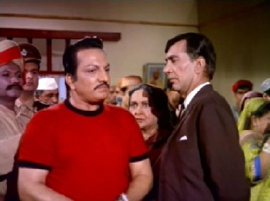 Shamsher Singh threatens Kailashnath in court Published February 10, 2009 at 380 × 283 in Ek Phool Do Maali (1969) ← Previous Next →
