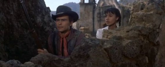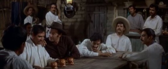 The depiction of the Mexican villagers. There’s just something about them that didn’t ring true. Part of this is because the Mexican censors insisted that the Mexicans be shown always wearing spotlessly clean clothes, which probably contributed to my feeling that these people weren’t really pitiable. More than that, though, is the fact that they don’t appear too scared, almost as if Calvera and his men were more a niggling inconvenience than anything else… and they always seem to have enough to eat (despite the scene where someone mentions that they’re subsisting on tortillas and beans). And they have the time and the wherewithal to hold a fiesta to celebrate the foundation of the village.