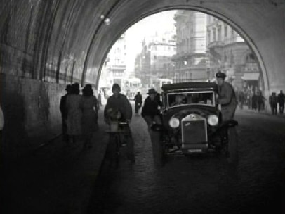 Antonio manages to leap onto the running-board of a passing taxi, as does a stranger, who helpfully yells to the taxi driver that he’s seen the thief ride the bicycle into a nearby tunnel. They go through, careening through the tunnel, to stop the cyclist racing ahead—only to find that it’s someone totally innocent, and the bicycle isn’t Antonio’s, anyway. Somewhere in the midst of it all, the ‘helpful’ stranger disappears.