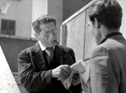 Dejected, Antonio goes to the one man who may be able to help. His friend Baiocco (Gino Saltamerenda) seems to moonlight as the director and producer of a very small-time musical/theatre company when he isn’t a garbage collector. Baiocco is sympathetic, and (more to the point) helpful. He knows where all the stolen bicycles in Rome wash up: Piazza Vittorio. The next morning, he’ll take Antonio there, and they’ll look for the bicycle.
