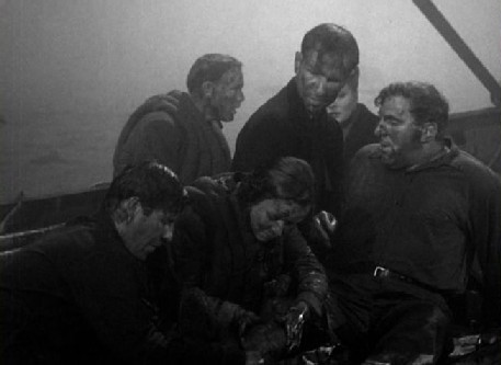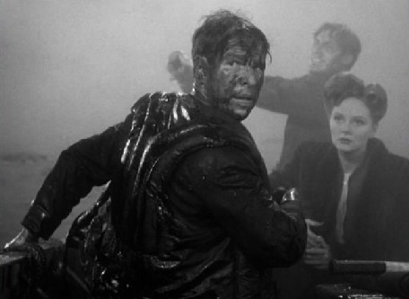 Connie is busy recording, through a video camera, everything that’s going on about her: even the approach of another survivor, clad in a life jacket and covered with oil, who staggers into the boat. This is Kovac (John Hodiak), who used to work in the engine room of the erstwhile freighter.