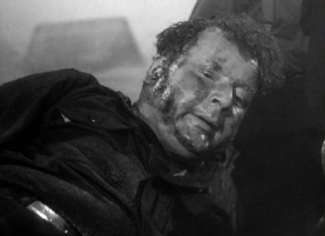 Kovac’s barely got his bearings and begun to give Connie a tongue-lashing for being so inhuman as to photograph the horror around, when they come upon more survivors. There is, to begin with, the freighter’s radio man, ‘Sparks’ (Hume Cronyn), whom Kovac hauls in, dripping with water and oil.