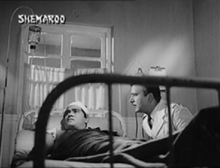 Ajay falls out, is hit by a passing car, and taken to a hospital by passersby. When he finally comes to, he tells the inspector (Jagdish Raj) who’s come to take his testimony that he doesn’t remember a thing about any bank robbery or car chase or anything. In fact, he’s surprised that he’s in a civil hospital: since he’s an army officer, he should be in the Military Hospital. Ajay’s memory is back!