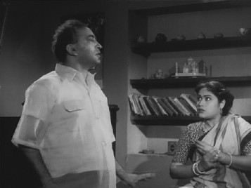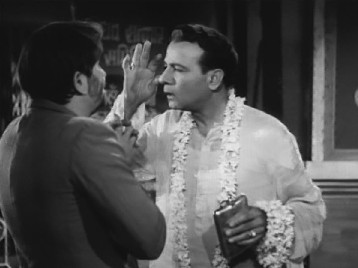 In all the turmoil, the Villager manages to lie low (by hiding in an empty oil drum), though Kailash Babu’s daughter Sati (Smriti Biswas), who’s been canoodling with her lover (Pradeep Kumar) on the sly, nearly gets caught.