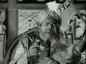 …while another guest, a nasty Sultan (Habib) connives with one of the courtiers (Nazir Kashmiri) to kill the Khalifa. The courtier slips some poison into the Khalifa’s drink, and before anyone knows it, the Khalifa keels over.