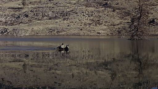 So Cogburn and LaBoeuf set off in pursuit of Tom Chaney, and Mattie, on her newly-acquired pony (whom she names Little Blackie), follows them. They try to shake her off, but she’s persistent as a fly – even swimming the river with her pony when the man on the ferry refuses to take her across.