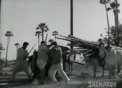 We’re introduced to the protagonist, Heeraman (Raj Kapoor) very early in the film. Heeraman owns a bullock cart which he drives, transporting passengers and cargo for a fee across the rural countryside. Within the first few minutes, we see the result of two decisions Heeraman takes: one, to transport stolen goods; and the second, to transport a load of bamboo.