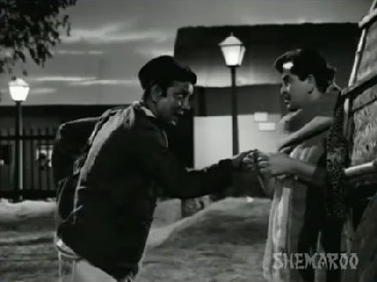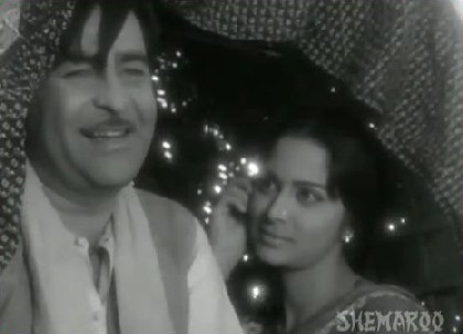 The way he joins the group under the tree to sing ‘pinjre wali munia’, and not even becoming the lead singer as would have happened in most films. Only other such song I can recall is Naya Daur’s Johny Walker song ‘main Bambai ka babu’ where Dilip Kumar was a sidey like Raj Kapoor here.