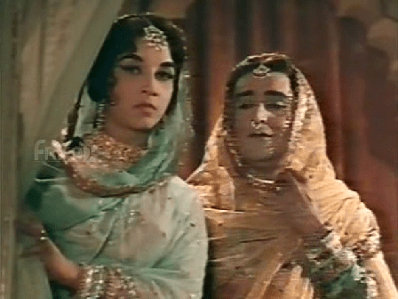The ladies, Mala Sinha, Shashikala, and Minoo Mumtaz. All are very pretty, and the first two have substantial roles too (Mala Sinha was nominated for a Filmfare award for Best Actress for her role as Jahanara). And yes, Aruna Irani is very cute. According to IMDB, she was only 12 years old when Jahanara was made.