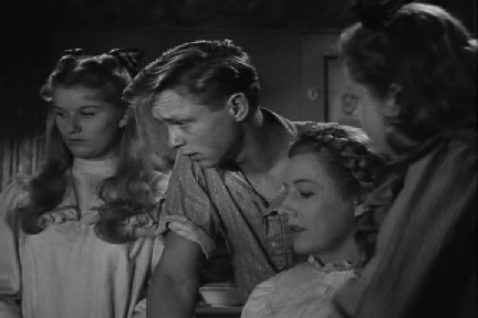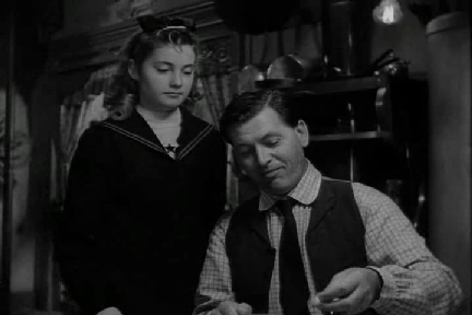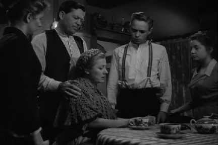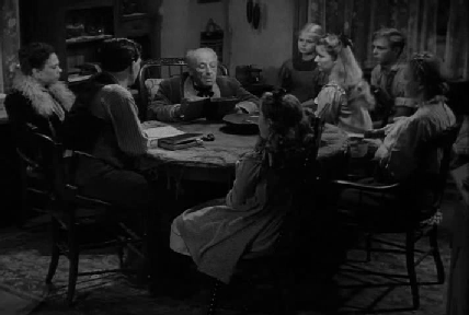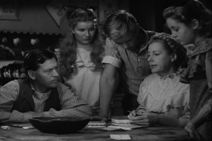 Lastly, there is Mr Hyde (Cedric Hardwicke), the old gentleman who rents an upstairs room in the Hanson home. When the story opens, Mr Hyde hasn’t paid his rent in several months, but Mama – who thinks it would not be ‘good’ to ask him for the money – has kept quiet about the debt. Mr Hyde, however, is very popular with the Hansons because every night, after dinner, he reads to them. A Tale of Two Cities, The Hound of the Baskervilles… all are grist to Mr Hyde’s mill, and he reads them in thrilling, awe-filled tones to the Hansons as they cluster around. It is thanks to Mr Hyde’s obvious and deep love of books that Katrin realises she wants nothing as much as to be a writer.