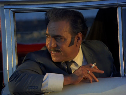 He leaps off the train into a river, and is picked up by a less nasty-looking but very smirky accomplice (Madan Puri). They drive off, while on the train, a railway employee discovers the dead body of the poor merchant who made that fatal train journey.