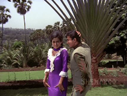 Quick switch now, to a garden where CID inspector Shyam (Rajesh Khanna) is romancing his girlfriend Neeta (Nanda).