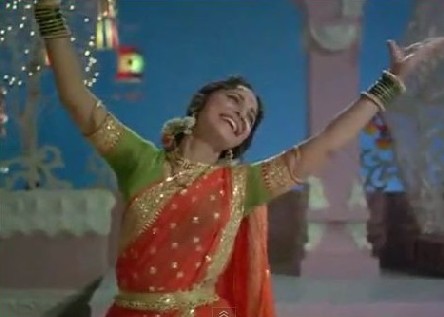 And you’re so right about how she manages to convey so much despite being fully clothed – and with movements that are so completely graceful, not obscene in any way. I think it’s pretty much the same with songs like Jaane kya tune kahi or even Meena Kumari’s mujras in Pakeezah or Vyjyantimala’s dances in Sadhana: all, while taking place in environs that are ‘taboo’, performed by ‘fallen women’, are still graceful and dignified and the sort of songs you could easily watch with your parents sitting next to you!!