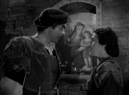 To the disappointment of all the others, Cesare Borgia chooses Captain Andrea Orsini (Tyrone Power). Lord Orsini is quite a favourite of Cesare Borgia’s and has carried out similar missions for him on previous occasions. He is also (and this is known to Cesare Borgia) the lover of Cesare’s cousin, Angela (Marina Berti). Angela is miffed when she discovers that Orsini is being sent off on yet another mission.