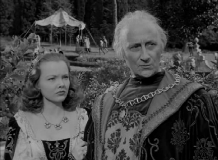 Later, back in Rome, the wedding of Lucrezia and Alfonso is being celebrated, when Andrea sees a familiar face: the beautiful Camilla Verano. This time, however, she’s come with her husband. And that is what gives Andrea a shock: Count Marc Antonio Verano (Felix Aylmer), the ruler of Citta del Monte and Camilla’s husband, is old enough to be her grandfather, not just her father. What on earth is a beauty like Camilla doing, married to this old man?