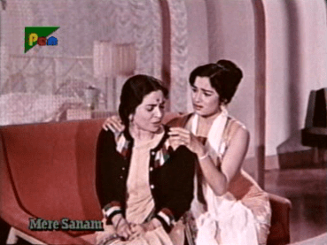 Ah, I didn’t notice the bit about Pran turning her face towards him, though I do recall her saying all her lines to the camera. Incidentally, I was reading an interview in which Biswajit said, on working with Mumtaz in Mere Sanam, that “We were impressed. Pranji said, ‘She will go far.'” So Pran obviously saw enough in her to help tutor her a bit onscreen! I’m glad he took the trouble – Mumtaz certainly was worth it.