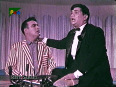OP Nayyar’s music. Mere Sanam’s main attraction is its absolutely sublime music. This one’s full of gorgeous songs, beginning with the very first one, Pukaarta chala hoon main: one of my favourite Mohammad Rafi songs. There’s Humdum mere maan bhi jaao kehna mere pyaar ka; the seductive Yeh hai reshmi zulfon ka andhera na ghabraaiye; and the lovely Jaaiye aap kahaan jaayenge – plus, another of my Rafi favourites, Tukde hain mere dil ke ae yaar tere aansoo. Others, not quite so fantastic, but still good, include Hue hain tumpe aashiq hum, Roka kayi baar maine dil ki umang ko, and Haji Baba.