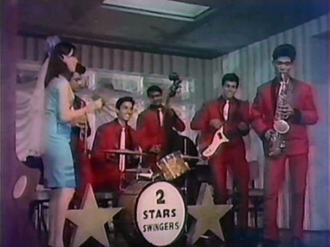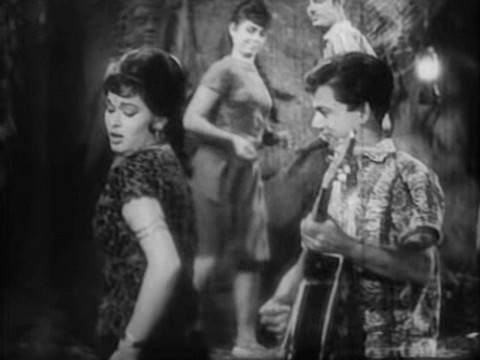 Memsaab gets the credit for first pointing out in her blog who the ‘singer’ is, as well as first pointing me to Herman Benjamin as a backup dancer earlier in his career. There are three guitarists in the video of Jaan Pehchaan Ho, with Edwina’s brother Terence being in the middle, and it’s his band, Ted Lyons And His Cubs, while Helen’s brother Roger is the left-most of the three guitarists. Unfortunately, Edwina isn’t in this one.