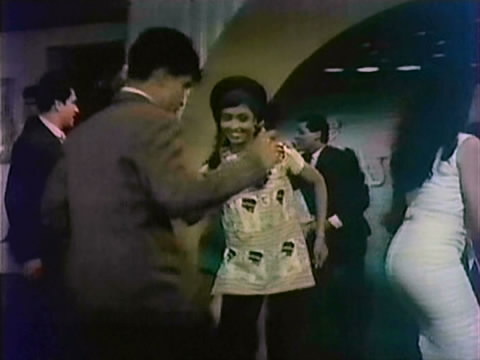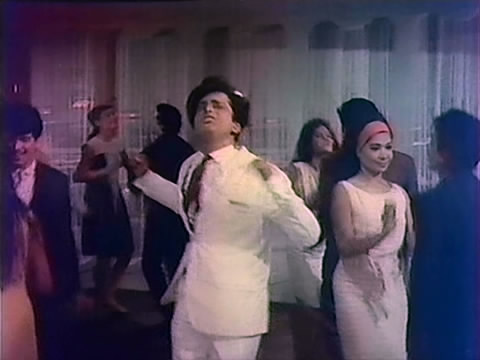 Sometimes it’s hard to tell who choreographed which dances when there were two or more choreographers working on a movie, but for the film from which this example of his work is taken he was the only choreographer. I would especially recommend paying attention to his handling of the support dancers in this song from 1967’s Aamne Saamne. In the opening section, while Prem Chopra is dancing with Sharmila Tagore and Shashi Kapoor bumps into Sharmila, the other dancers around them are doing regular only loosely structured dancing. As soon as the song begins the dancing becomes very tightly controlled. Every bar (8 beats) the synchronized dance movements change. Sometimes the couples are artfully scattered around the floor and at other times they’re arranged in lines or in a ‘V’ formation. The space being used is an unusual one with a small stage and a dance floor in front of it, with another part of the floor in the back, almost as an alcove. Herman makes masterful use of the whole space. In addition, the dancers and musicians include a number of Edwina’s friends and family. Among the musicians, the drummer is Sonu, brother Terence’s brother-in-law and the guitarist is her younger brother Neville.