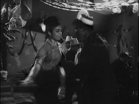 As a former dancer himself, Surya Kumar sometimes couldn’t resist putting himself into the dances he was directing. He might cast himself as a backup dancer, or ‘play’ an instrument briefly. Sometimes he even took the part of the lead male dancer opposite the lead woman dancer. Here’s one such example where he dances opposite Helen in a dance that also features Edwina, Dil Se Dil Takraye from the 1959 film Love Marriage:
