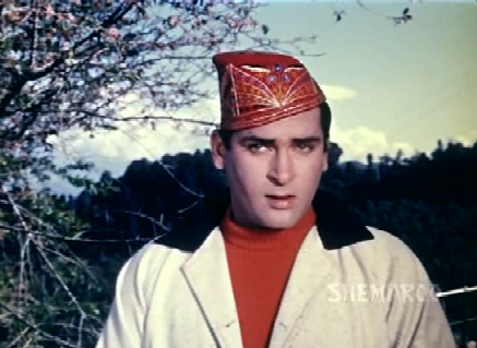 But, without further ado: my list of my ten favourite Shammi Kapoor songs.  This was a terribly tough list to compile, because there are dozens of Shammi Kapoor songs that I simply adore. Eventually, though, it boiled down to this: songs that sound good and look good (after all, when one’s talking about an actor’s best songs, it should include songs that show off the actor to advantage). These are all from films that I’ve watched (nearly all of Shammi Kapoor’s films between 1957 and 1970). To make life a little easier for myself (and to prevent this list becoming a ‘top hundred favourites’!), I’ve restricted myself to only one song per film, and to songs that are Shammi solos.