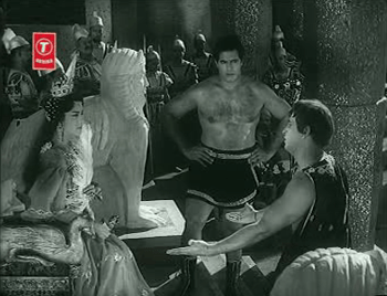 Years pass, and Firdaus has now grown up (into Dara Singh, yippee!). Firdaus is big and brawny and seems to be pretty untrammelled by a foster-father or any other foster relatives. He lives in the kingdom of Jodia [that’s how everybody pronounces it. I wonder if this was meant to be Judaea. It seems to have some connection to Rome, but nobody bothers to mention what].