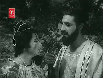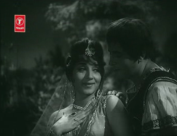 …with the result that Arsalan and Shabnam (Indira) fall in love with each other and are soon going about singing love songs, under the indulgent eye of mother/foster mother.