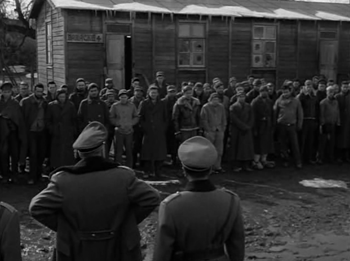 The next morning, the Commandant of the camp, Oberst von Scherbach (Otto Preminger in one of his few appearances as an actor) addresses all the POWs—and shows what happens to POWs who try to escape.