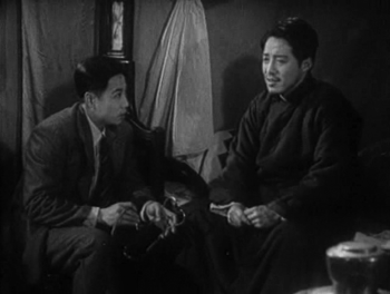 Lao Huang also recognises Zhang as Liyan’s old schoolmate, and is equally happy. He joins Liyan in insisting that Zhang spend some days with them. He goes off to prepare a room for Zhang, and to inform the mistress, Yuwen, of the guest who’s arrived.