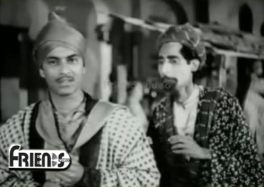 Lala Rookh begins in the province of Noorabad, the Shahenshah of which is Shah Murad (Talat Mahmood). Shah Murad, like innumerable other rulers of fairy tale and legend, has a penchant for going out, incognito, amidst his subjects to see how they actually live. One night, Shah Murad, dressed as an ordinary man, goes out with his servant, Mansoor (?).