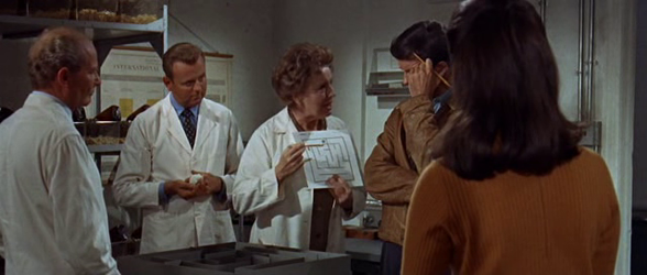 Mrs Kinnian is also the one who helps in Charly’s regular sessions at a clinic where two researchers, Dr Anna Straus (Lilia Skala) and Dr Richard Nemur (Leon Janney) are conducting a series of studies on brain function. Charly is the subject of a study, and spends some time every week at the clinic, with Mrs Kinnian painstakingly asking him one question after another. Some are forthright tests of everyday intelligence: what is common between shoes and gloves? Others are tests of a more emotional nature: what does this illustration of various people depict?
