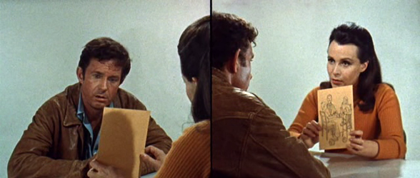 The split screens. The director, Ralph Nelson, uses split screens every now and then (along with, later in the film, the jarring zooms and graphics that used to be so popular in the 60s). My main problem with the split screens was that I found them very distracting—I didn’t know where to focus, because there was invariably something equally interesting happening in both halves of the screen.