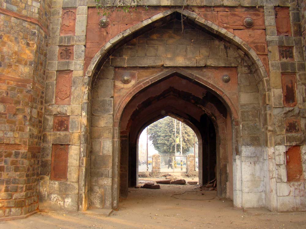 The gatehouses were in most cases built of brick or rubble, clad on the outside with sandstone. The gates themselves were of heavy wood, reinforced with iron bands. The gates, along with smaller wicket gates (known as khidkis, such as Khidki Faraashkhaana) formed an essential part of the city’s security. After nightfall, the gates would be shut and barred, and opened only the next morning.
