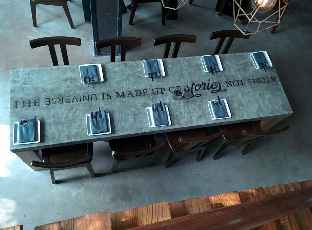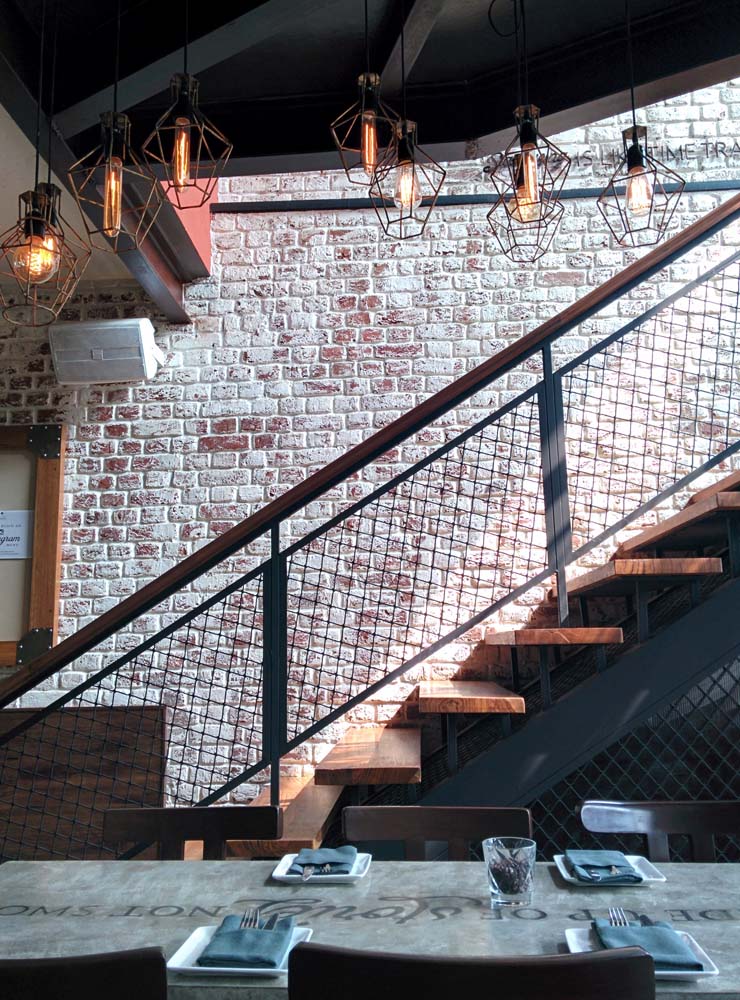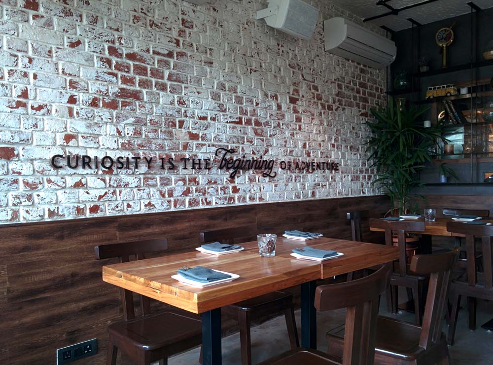 3. The ‘European’ in the description must be for the general style. The walls with exposed bricks, and the wooden platters.