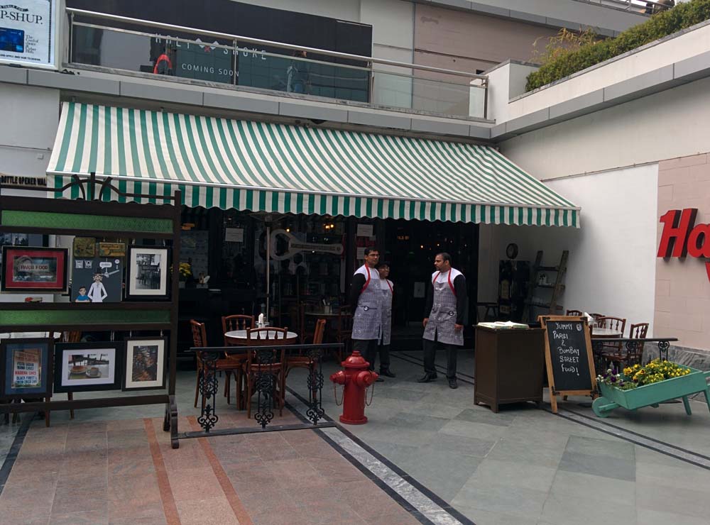 It’s taken us a while, but we made it to Cyber Hub this last weekend. Cyber Hub is, at present, mostly a food mall, though multiple options for entertainment and recreation are in the pipeline. Right now, this spacious open paved area (rather reminiscent of European city streets, with flowering plants and garden umbrellas) is home to restaurants like Oh! Calcutta, Hard Rock Café, Starbucks, Dunkin’ Donuts—and Soda Bottle Opener Wala.