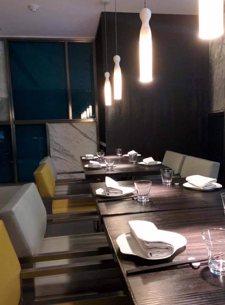 Hardly surprising, then, that we got really excited when, 6 years later, Yauatcha opened in Delhi. We told ourselves we’d go check it out, but with one thing and another (not to mention Yauatcha’s very steep prices!), we didn’t visit it for months. Until two days back, when someone mentioned to us that they’d gone, and that Yauatcha was part of the heavily discounted Citibank Restaurant Week. Rs 1,000 per person (exclusive of taxes and service charges) for a set lunch meal, Rs 1,350 per person for a set dinner. A phone call to book a table resulted in the news that lunch was all sold out. We settled for dinner instead.