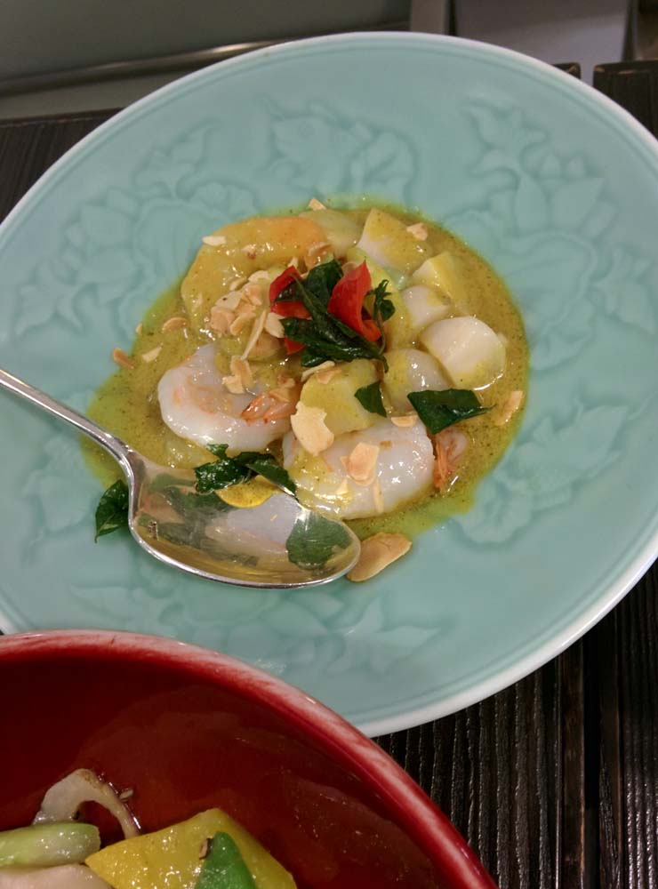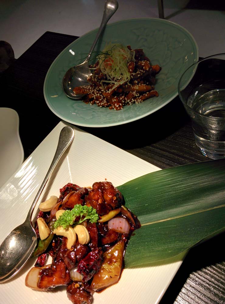 1. Crispy lamb with raw mango: Shredded lamb, deep-fried to a crisp and coated with a glaze (honey?) and sesame seeds, with a few French-fry thick strips of sour raw mango here and there. Good, but this was something that was best enjoyed right off the wok. Since I had mine first, I liked it; my husband, who left his for later, found that it had become chewy in places and soggy in others by then. We should probably have been informed that this should’ve been eaten first.