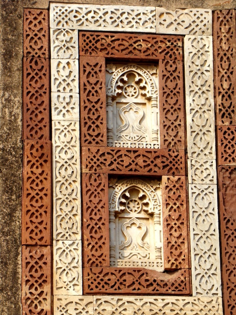 Sandstone, especially the abundant red sandstone, was the perfect material for carving, allowing very fine and intricate patterns to be created (as at Fatehpur Sikri, or at the Qutb Archaeological Complex).