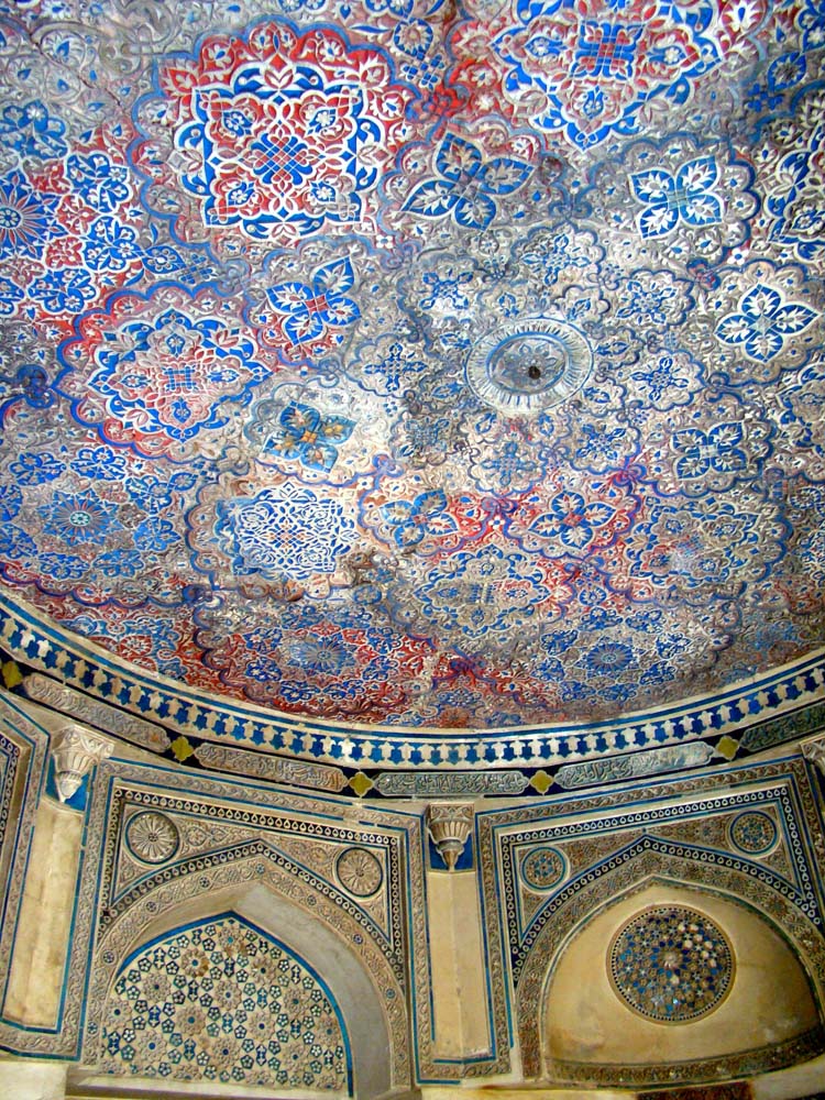 A view of the painted ceiling at the Tomb of Jamaali-Kamaali.