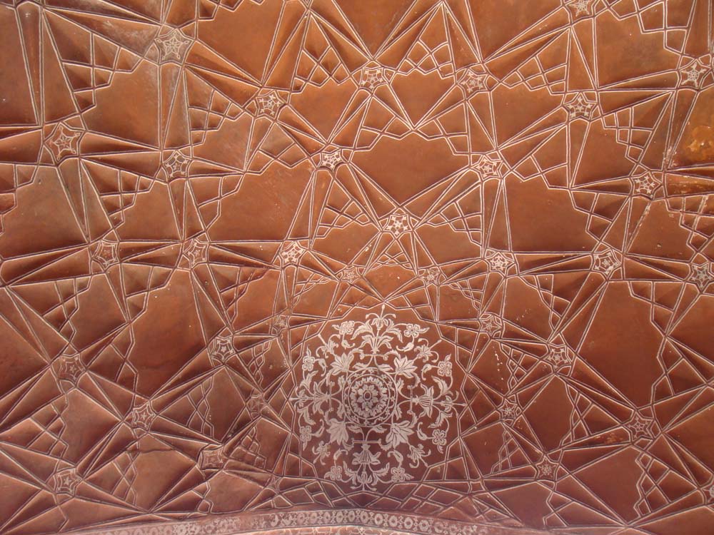 The painted ceiling of the Mehmaan Khaana at the Taj Mahal.