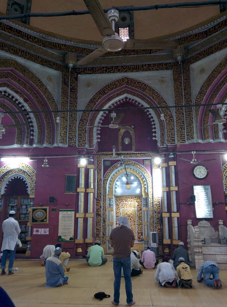 Inside the Jamaat Khaana mosque at the dargah. An unusual mosque, in that it’s octagonal rather than the more conventional four-sided building.