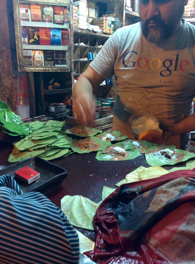 Last up, and bought from the paanwallah next to Nasir, were paans (a sweet one for me, and for most of us). The leaf a little too thick, but with a good dollop of gulkand, and lots of refreshing flavour).