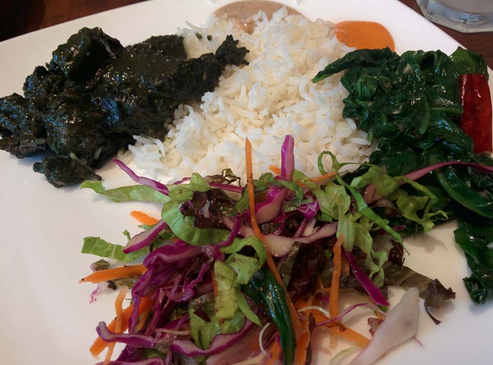 Eaten along with the rice (and some of that fabulous sesame seed chutney), this was a great meal. Good comfort food, delicious, and with the light spinach balancing out the richness of the doh nai. By the time we finished, we were too full to order a dessert. I must admit that the choice of desserts also didn’t really appeal to me; there were traditional Himalayan desserts, but these sounded too grain-rich for me to have on what was already quite a full stomach. There were a range of ice creams (including strawberry cheesecake, Belgian chocolate, and crème brulée), but it somehow seemed blasphemous to order one of these after a true-blue Himalayan meal! (The crux of the matter, too, was that we just didn’t have space for dessert).