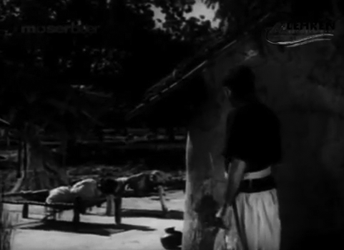 Hori, puzzled, goes back inside. A little while later, Gobar arrives home—to find the cow lying twitching and obviously at her last gasp. Hori, Dhaniya and Gobar rush out to the cow, but it’s too late. She dies before their very eyes, poisoned.