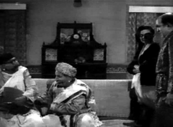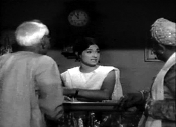 She goes off, leaving behind her a very confused lot. The jeweller comes swiftly to the conclusion that the sight of the law has frightened this wily girl, and that’s why she’s now ready to pay up. He thanks the inspector; they won’t be needing him any more, as he can see. They’ll collect the money on their own now. [and, of course, since they end up going all over again to Seema–turned–Asha’s house, this isn’t the end of their troubles].