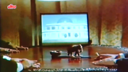 Mahal begins with a short scene featuring a bad photo of a tacky-looking palace [it looks like a terribly amateurish model, probably made by a clumsy apprentice, out of cardboard and poster colours]. Three men, of whom we never see faces or even profiles, sit around the table on which the photo is propped, and one of them says, in a flat and toneless voice, that this palace is the stake in some big game. And that they must plan well in order to win that game, blah blah.