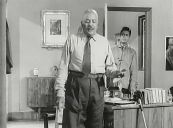 For someone who’s pretty certainly not going to get paid to represent Neela in court, Rajesh is now going to have to do the spadework as detective, too. So, with CID to keep watch, he sneaks into Neela’s house—that great big mansion we’d seen at the start of the film. [As counsel for the defence, wouldn’t he legally be allowed to see the scene of the crime for himself? Why this cloak-and-dagger business?]