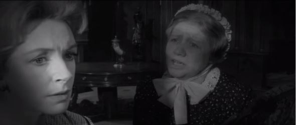 …so much so that, later in the day, she admits to the kindly housekeeper Mrs Grose (Megs Jenkins) that though she’d been apprehensive on her way to Bly, now she cannot help but love the place. And the child. What a darling Flora is! Mrs Grose agrees, wholeheartedly. There is a mild mystery, though: when Miss Giddens asks Mrs Grose if she had been calling out to Flora, Mrs Grose denies it (Flora herself says she didn’t hear anybody call). Mrs Grose is complacent: it was probably one of the maids. Miss Giddens doesn’t let it bother her any more.