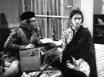 So we have a complex set-up. Chand and Jameela are in love. But Chand is also pretending to be Khan Sahib, whom Jameela thinks a loony and lascivious old man. Shekhu is actually in love [or lust, or whatever] with Bahaar, but is dangling after Jameela for her wealth. And nobody except the old maid knows that Yusuf/Shekhu is an impostor.