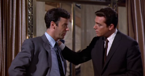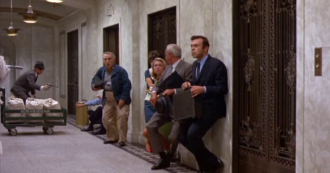 The Thomas Crown Affair begins in a hotel corridor, where Erwin (Jack Weston), looks furtively around before knocking on a door and entering. This is an employment interview of sorts: Erwin is being taken on for a job. As soon as he enters, a bright light shines straight into his eyes, blinding him.